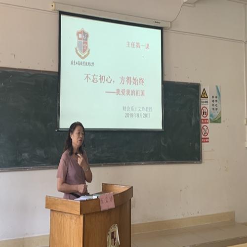 为了响应“不忘初心,方得始终——我爱我的祖国”主题,财会系于2019年9月28日上午9:00在智慧楼304开展“主任开学第一讲”。出席本次会议的有财会系王文玲主任、江涛章书记以及财会学子。主讲人为王文玲主任。