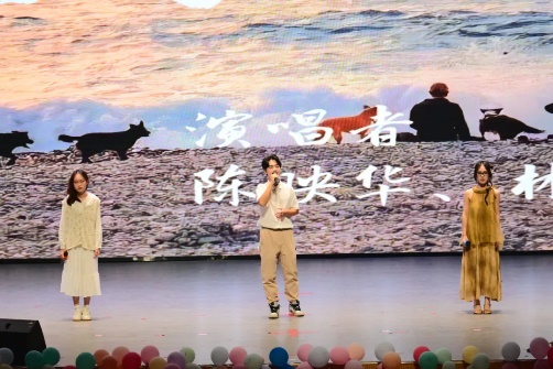 图为学院辅导员演唱现场