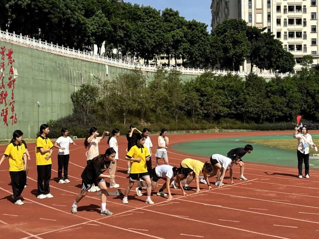 径赛跑道上,短跑选手们如离弦之箭,瞬间爆发的速度让人惊叹。中长跑运动员们则凭借着顽强的毅力和坚定的信念,在赛道上一圈又一圈地坚持着。他们挥汗如雨,却从未放慢脚步,只为了冲过终点线的那一刻荣耀。径赛场上的竞争激烈而精彩,每一次冲刺、每一个超越都赢得了观众们的阵阵欢呼;团体赛中,同学们齐心协力,为了共同的目标而努力奋斗。